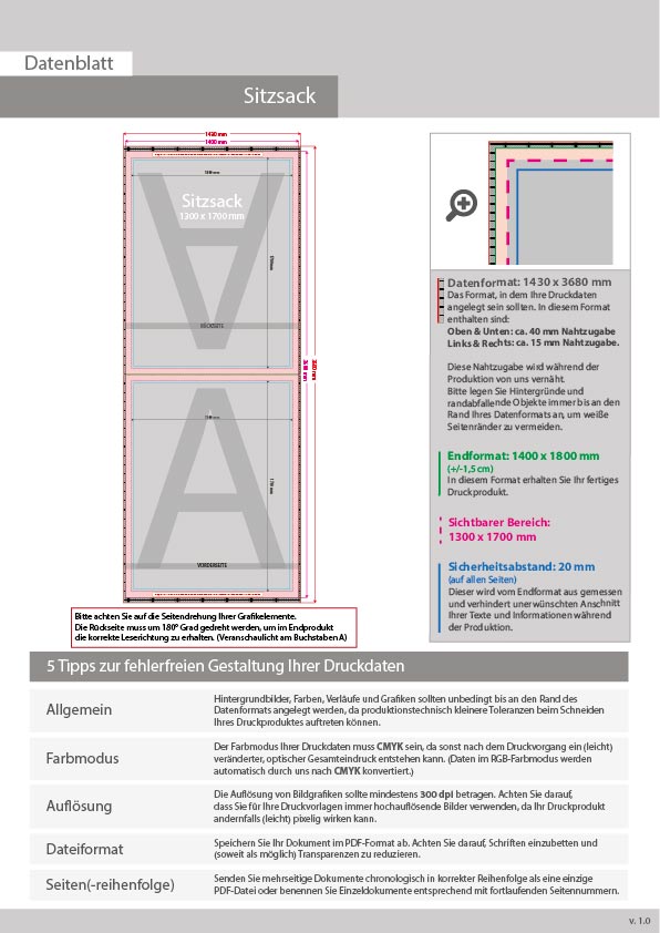 Hochwertiger Sitzsack, komplett vollflächig 4-farbig bedruckt