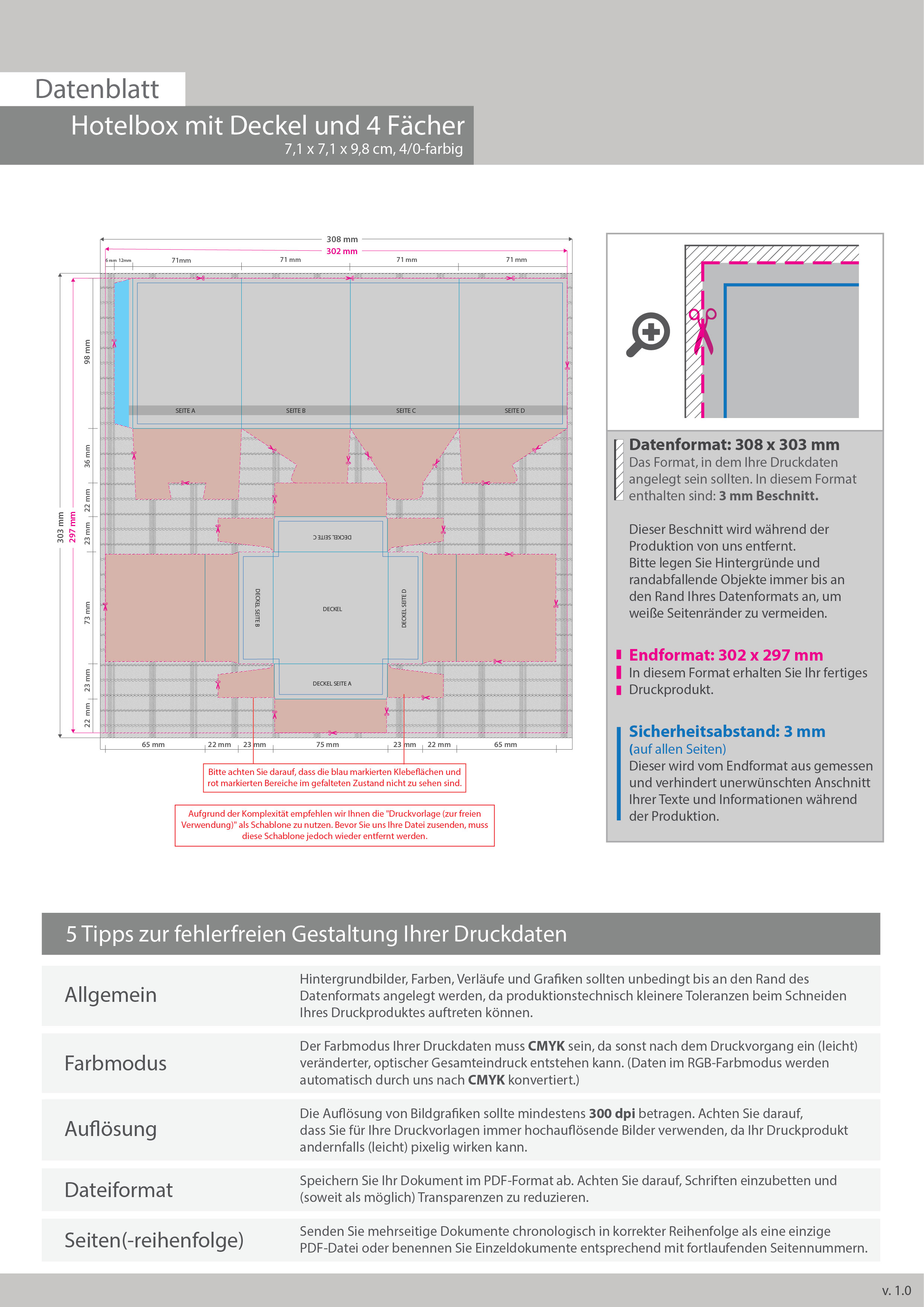 Hotelbox mit Deckel (7,1 x 7,1 x 9,8 cm) einseitig bedruckt 4/0-farbig