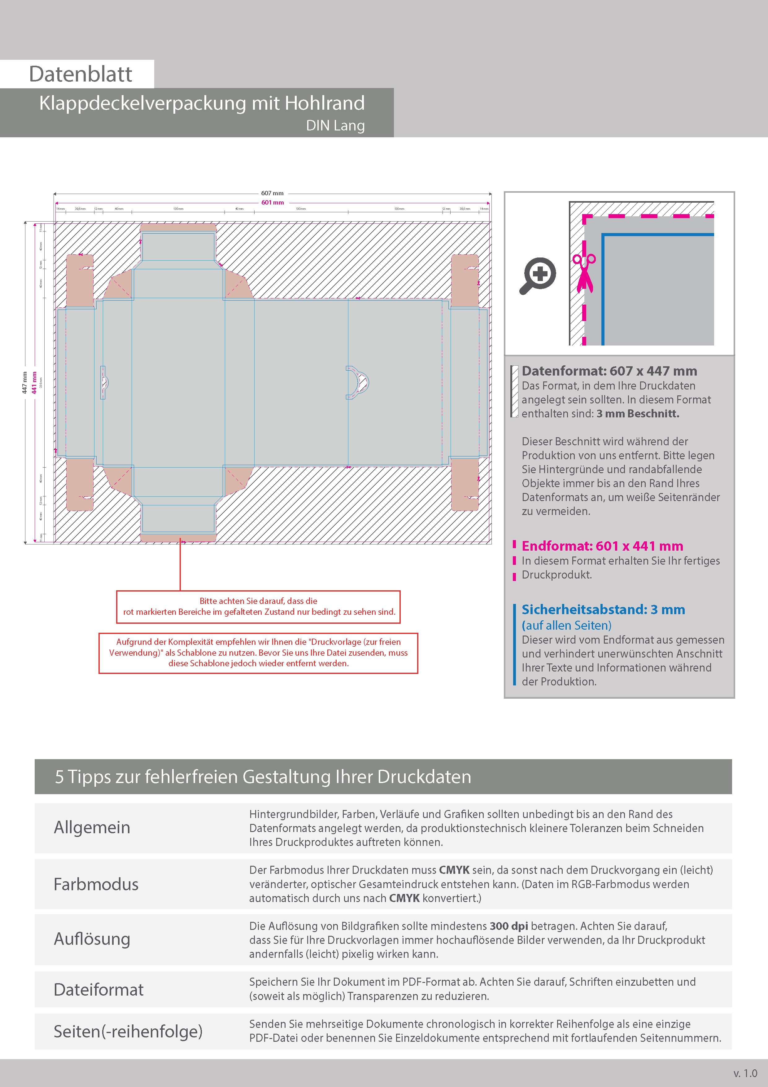 Klappdeckelverpackung mit Hohlrand DIN Lang (23,4 x 12,9 x 4 cm) einseitig bedruckt 4/0-farbig