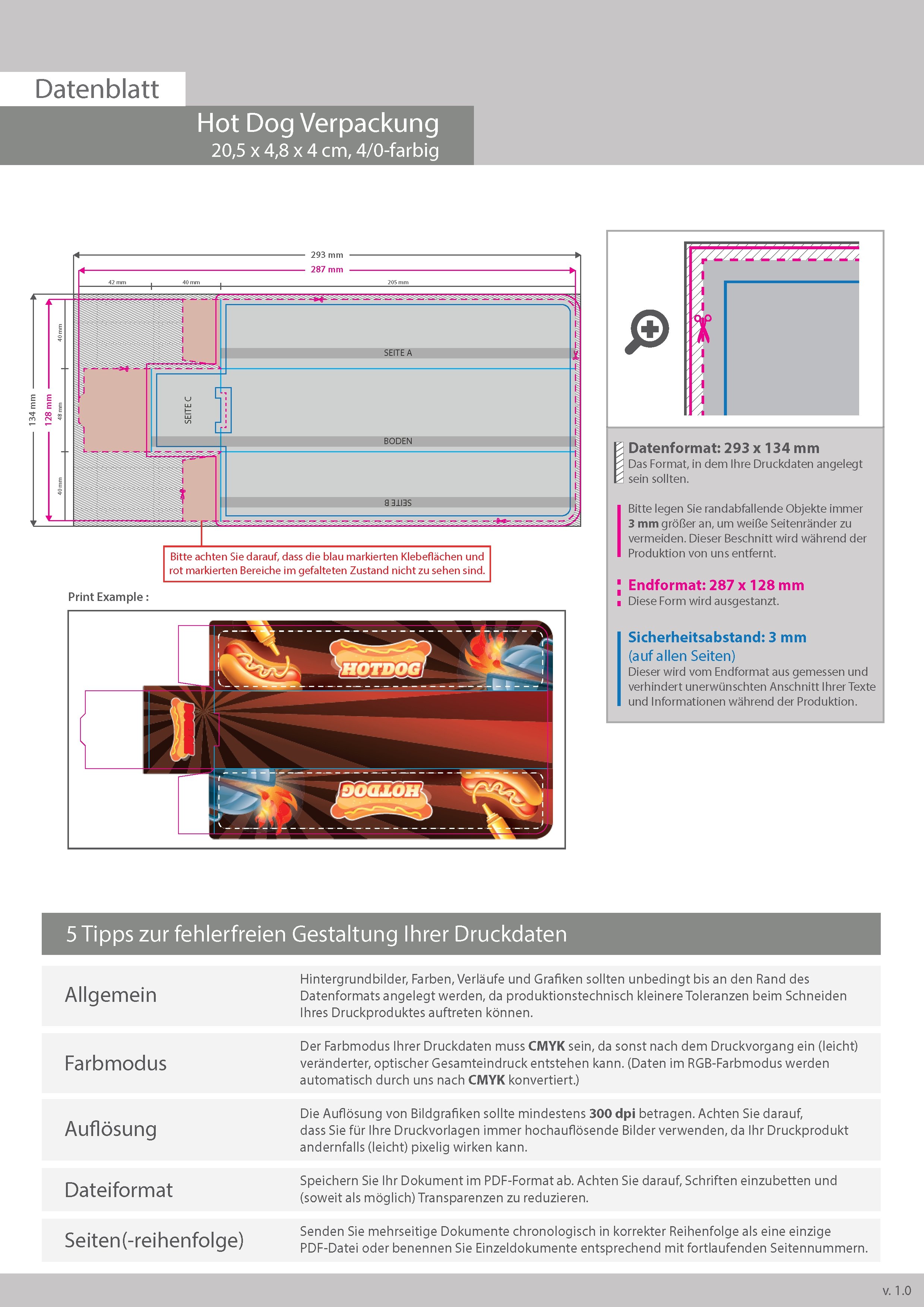 Hot Dog Verpackung (20,5 x 4,8 x 4 cm) einseitig bedruckt 4/0-farbig