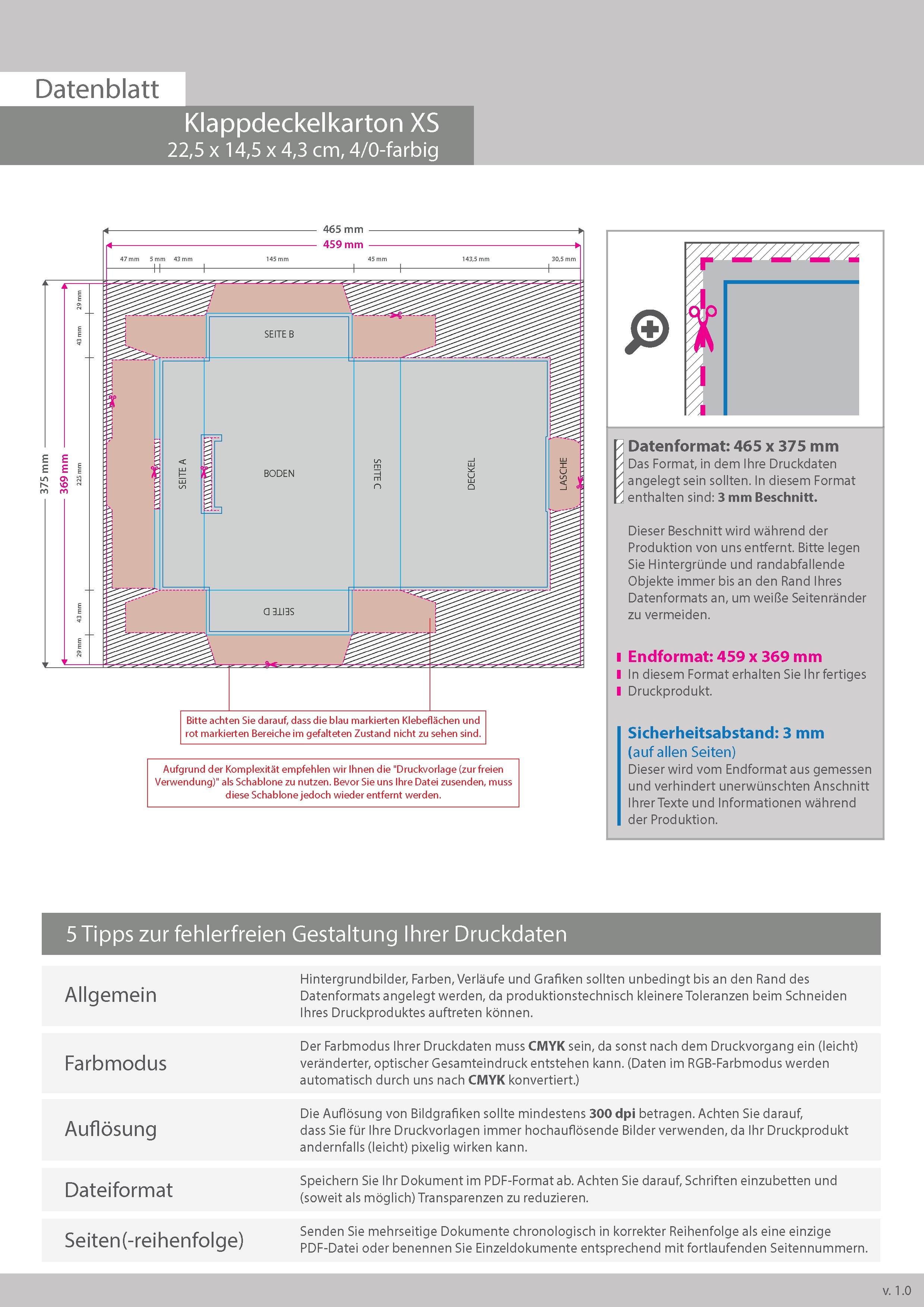 Klappdeckelkarton XS, 4/0 farbig bedruckt (CMYK)